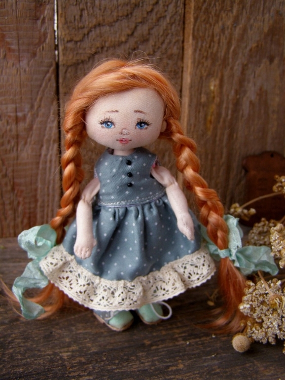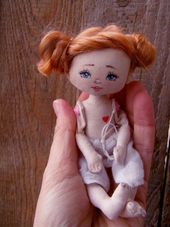 Кукольный мир - человекоподобные куклыЕще одна рыженькая малышка....текстильная шарнирочка 15 см...немного солнышка нам не помешает