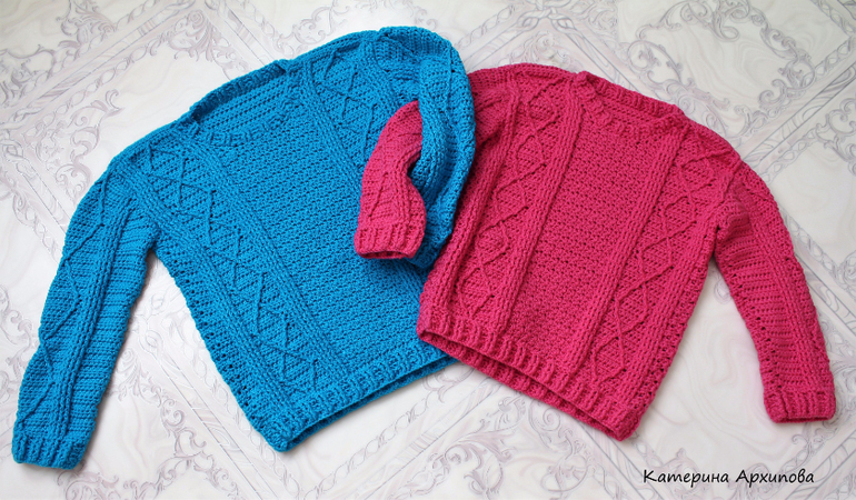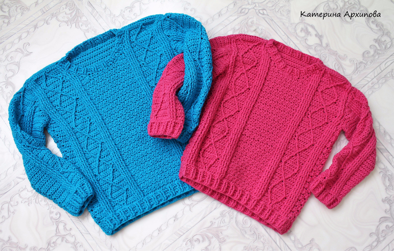 Вязала деткам по кофте...схемка из журнала,кому нужно сфоткаю скину!!! Увеличивала на наш рост...связаны из пряжи Дропс 100% шерсти...очень мягенькие и ни грамма не колючие...вообщем пряжей я довольна...