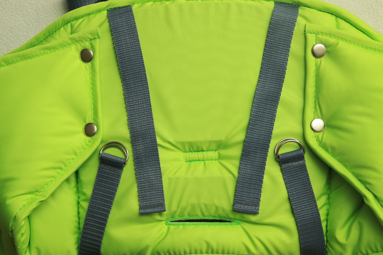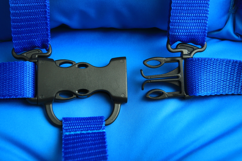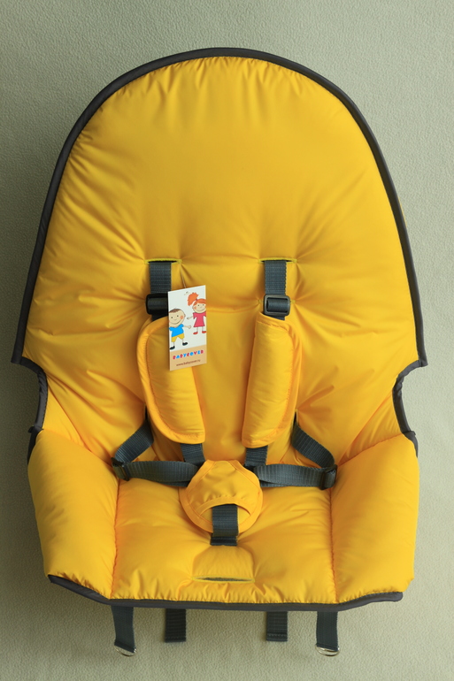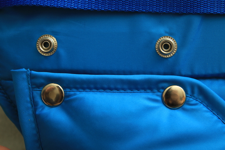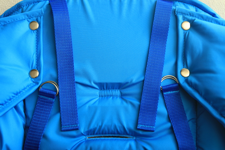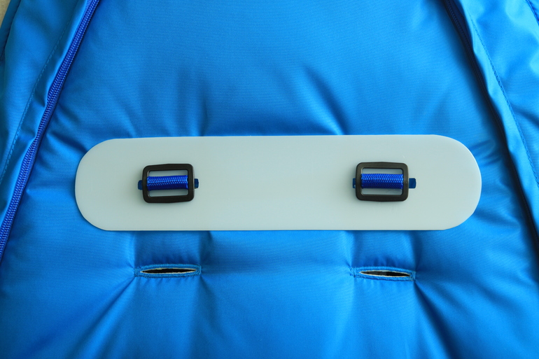 Как и в предыдущие разы чехол в комплекте с ремнями и накладками на ремни. Липучки заменены на кнопки, а пластиковые полукольца на металлические. Кнопки усилены вставками пластика для избежания их выскакивания сквозь ткань, жёсткий листовой пластик в районе места сидения присутствует, как на штатном чехле. Пластиковая пластина, удерживающая плечевые ремни заменена на новую.