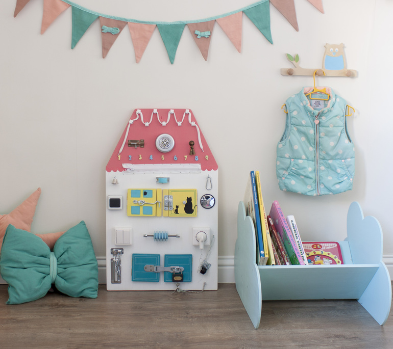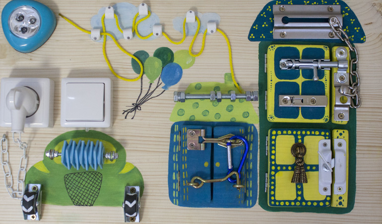 Развивающие игрушкиВсе уже знают о пользе развития мелкой моторики и о том, что бизиборд способствует ее развитию.