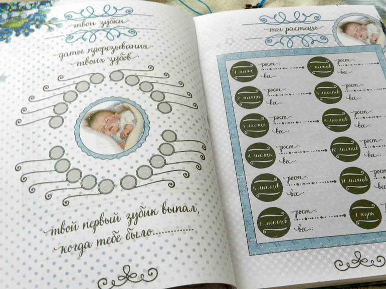 СкрапбукингДобрый вечер, Девочки! Сегодня хочу показать новый бебик с новыми, невероятно красивыми страничками. Помимо самых важных записей о малыше от рождения до школьных лет, книжечка вместит более 30 фото. Так же можно разместить фото в рамочку на форзаце. Есть 2 конверта (для первых рисунков и писем от мамы). Графики роста, рамочки для фото семьи, отпечатки ножек-ручек. Под кат более 5 фото. Заглядывайте!