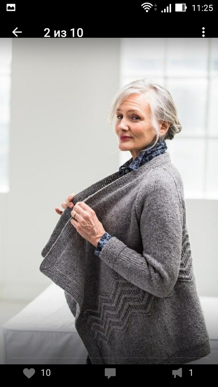 Добрый день! Подскажите, плз, про серый кардиган. Где можно схемы вязания подглядеть?
