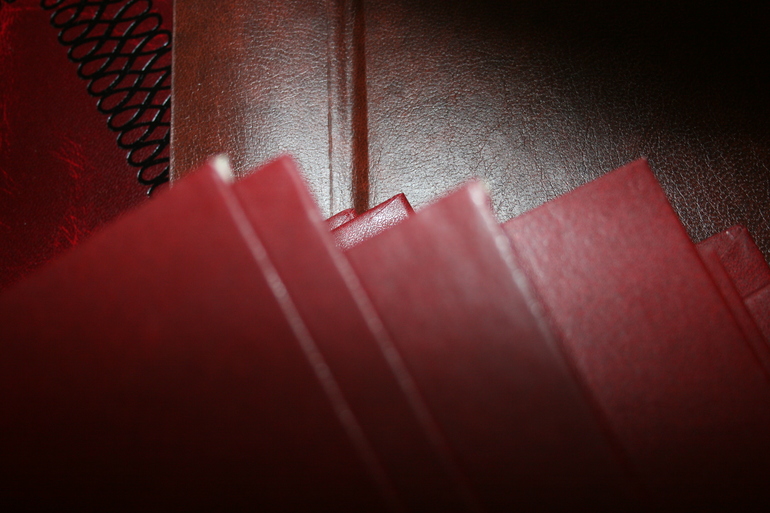 С типографии. Некоторые углы чуточку сбиты, в самом маленьком формате. Так - новые. Три формата (около А 4 самый большой)