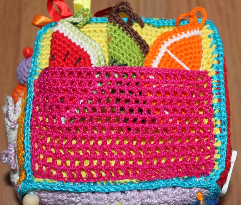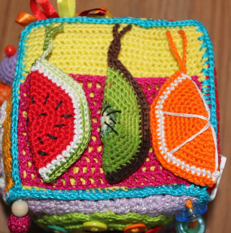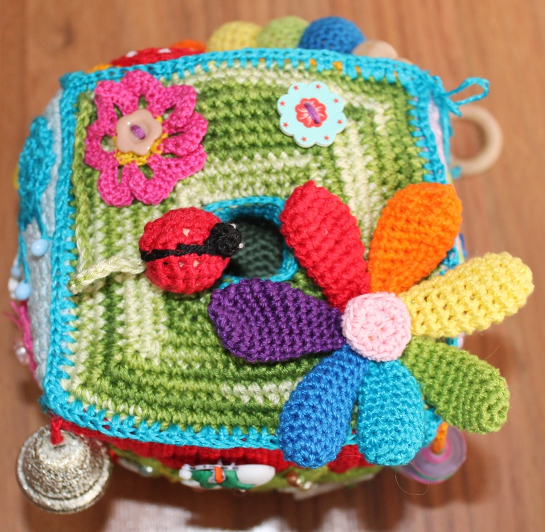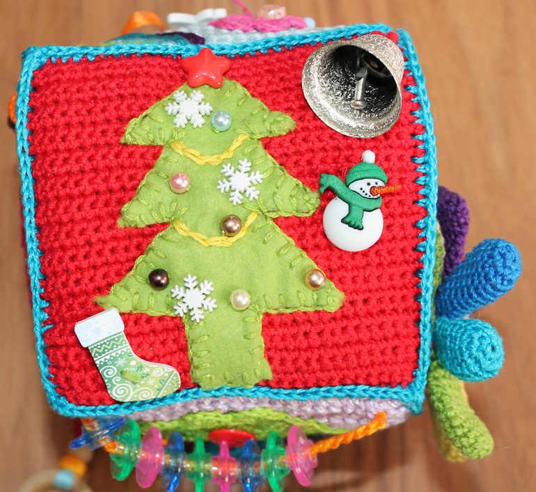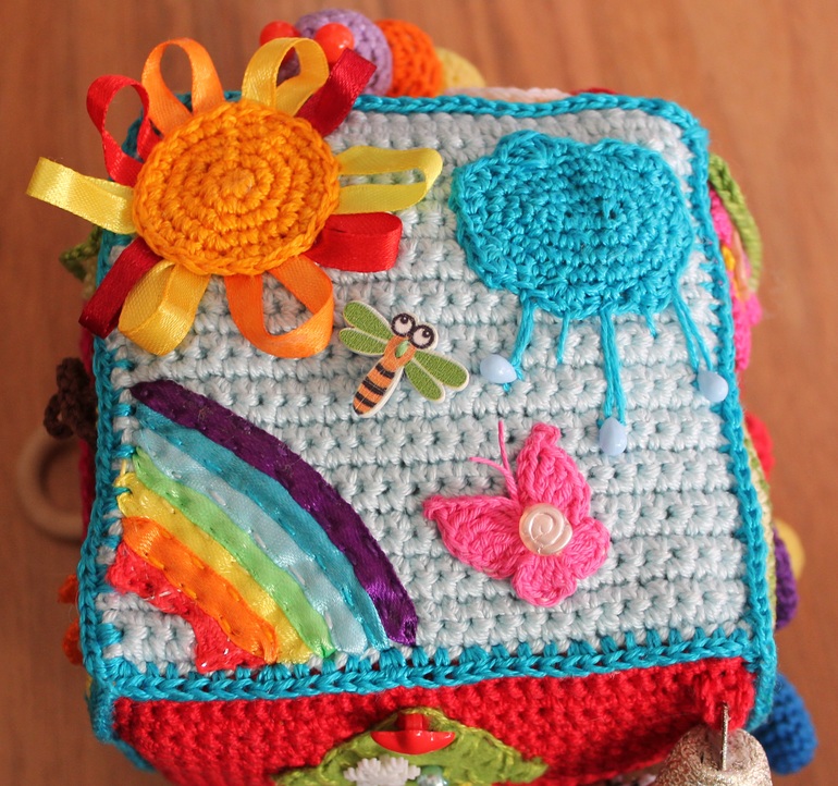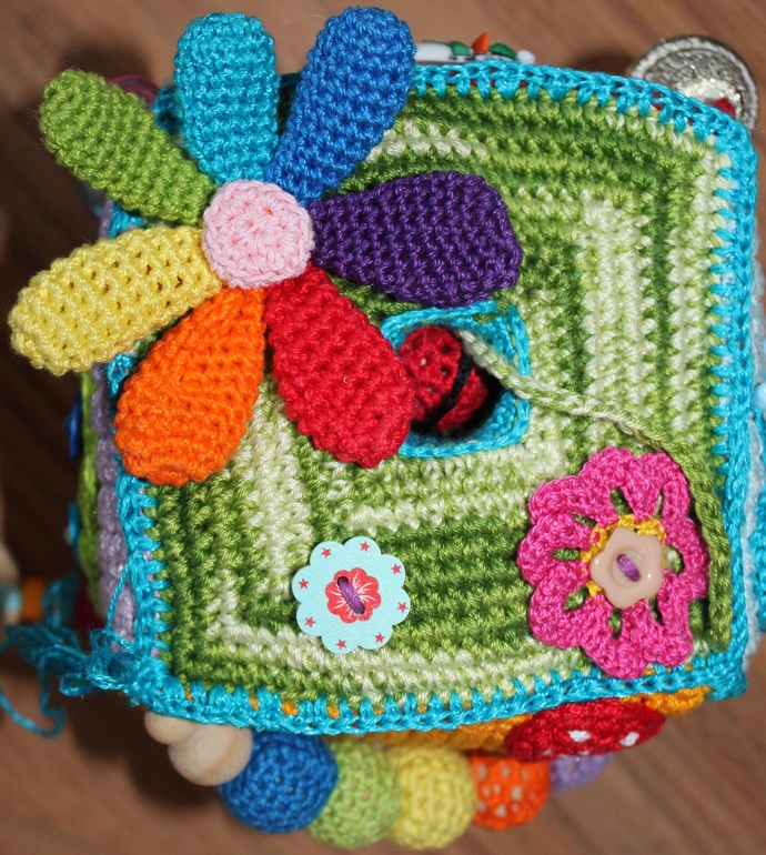 Вот и все! 6 сторон = 6 идей. Внутри кубика поролон+синтепон, баночки из под киндеров с горохом, фасолью и прочими гремелками.