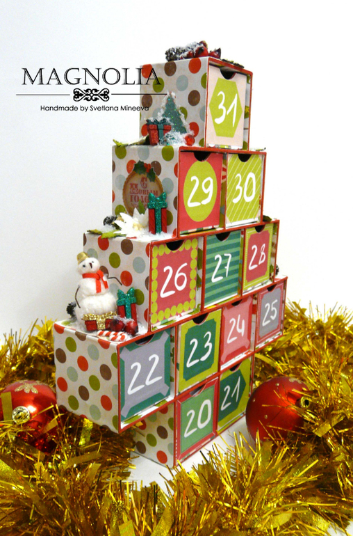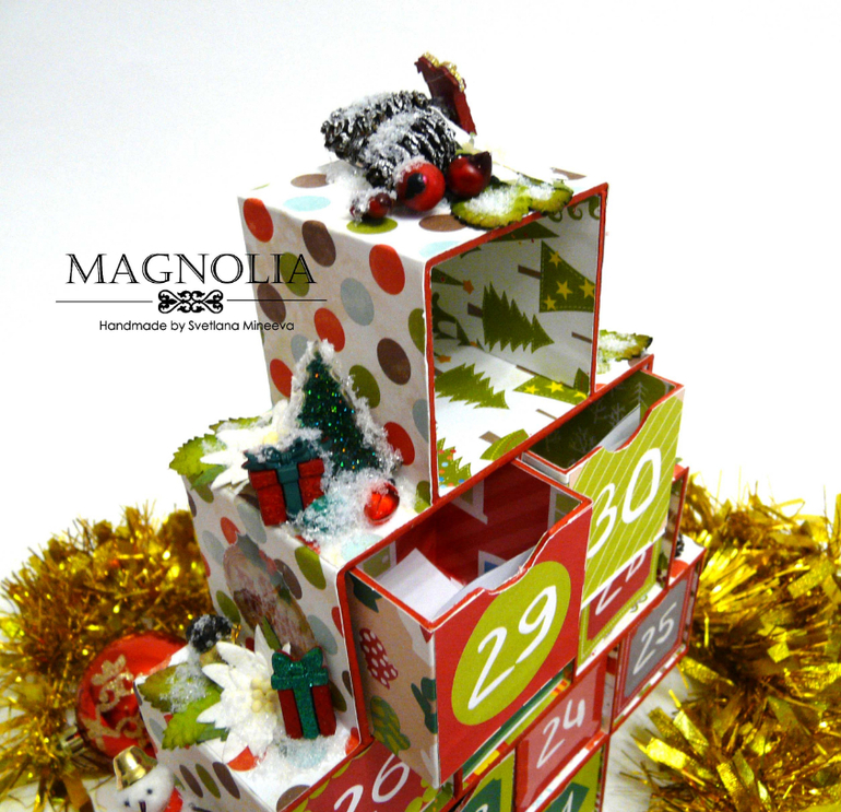 СкрапбукингВсем доброго вечера! Хочу показать вам свою зимнюю работу для дочки - адвент-календарь. Сделала его полностью с нуля без заготовки, рассчитан на 12 дней до НГ :)