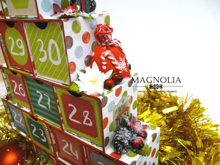 Всем доброго вечера! Хочу показать вам свою зимнюю работу для дочки - адвент-календарь. Сделала его полностью с нуля без заготовки, рассчитан на 12 дней до НГ :)