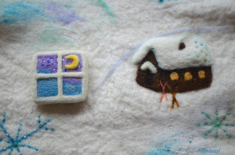 Барышня заказывала себе брошь. Пожелания были - окно, ночь, зима и луна. Не подошло. Наверное, в моих руках брошь получилась слишком светлой, оптимистичной ))
