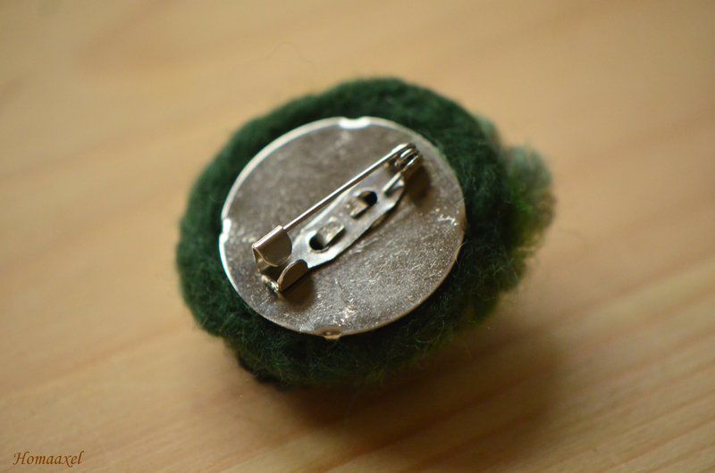 Крепеж для броши двойной. Сначала были пришиты все шерстяные детали и бисер, потом две части крепежа были сложены и таким образом совершенно не видна изнанка работы.