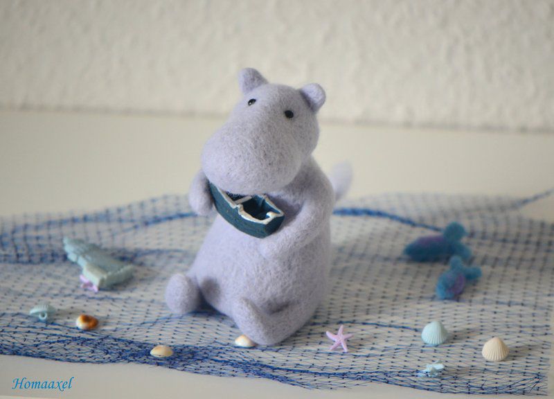 Войлочный Муми-тролль был сделан в подарок капитану яхты из Черногории. Было озвучено пожелание "Про Муми-тролля и море".