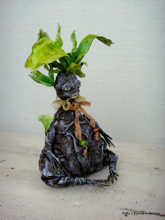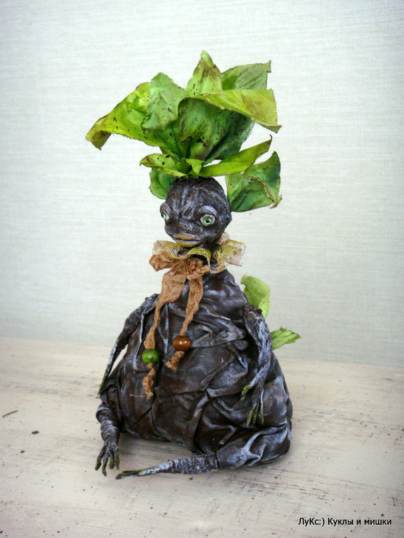 Я даже не знаю как описать свои впечатления об этом создание..... даже не представляю как вам в голову идея создания пришла.... сразу вспомнилась "эта Мадам" из фильма про Гарри... как она верищала... а ваша улыбается и такая "с секретиком"))) вот бы её в горшок и пусть там сидит-растёт))) если она и правда магическая, то пусть вам всего хорошего подарит обязательно)))