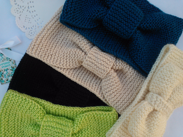 Вязание спицамиСвязалась коллекция повязочек для прохладного утра.Под катом еще 1 фото.