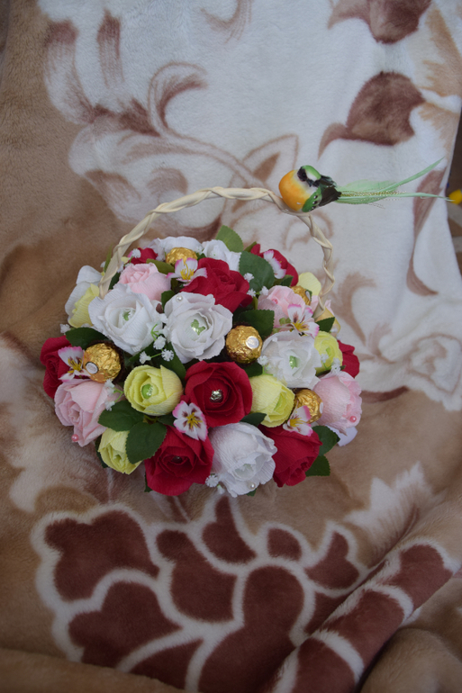 Букеты из конфет. Свитдизайн.Всем добрый день, девочки!Очень редко занимаюсь букетами из конфет,вот,что накопилось за последние полгода, некоторые работы не успела сфоткать, выкладываю на ваш суд, что есть. Под катом 18 фотографий: