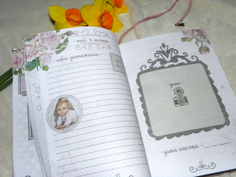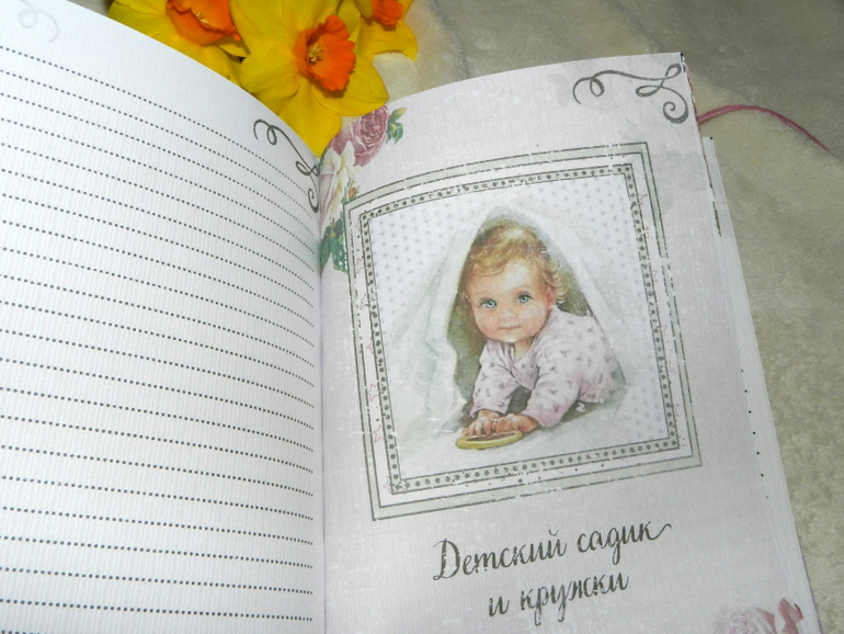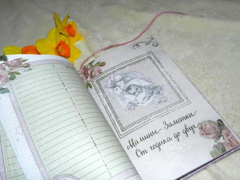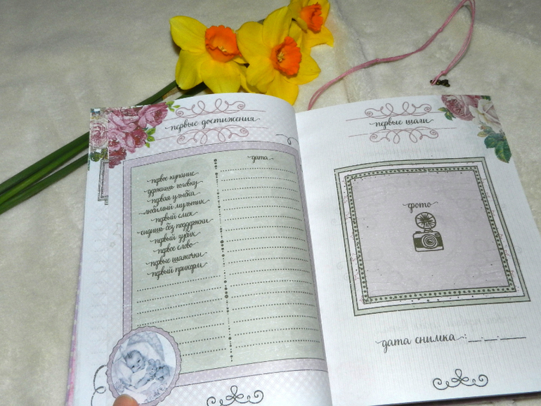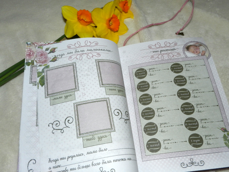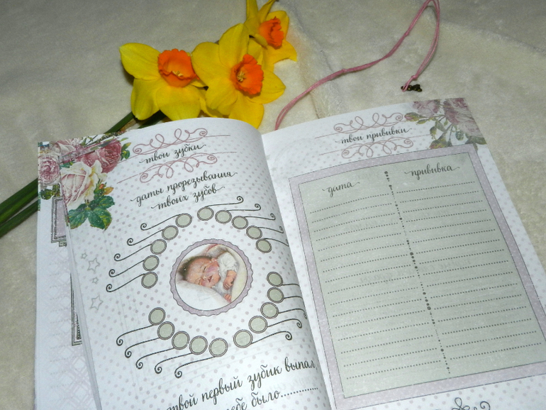 СкрапбукингДобрый день! Я с очередной книжечкой! Я влюблена в эти новые странички настолько, что решила своим девчонкам переделать))) Странички прекрасны, столько всего можно записать! Нежные, с цветами и малышами))) От рождения до школьных лет. Бебик вместит около 30 фото! Есть рамочка для фото на форзаце и 2 конверта(для писем, рисуночков, билетиков). Под кат более 5 фото!