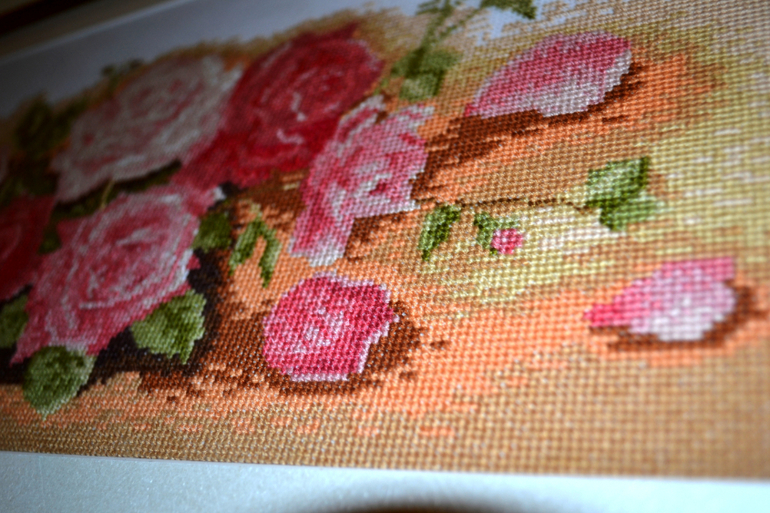 Очень красиво, люблю розы! Только хочется фон сверху чуть затемнить( полукрестом голубого или бежевого), но это мое мнение и работа то уже готова.