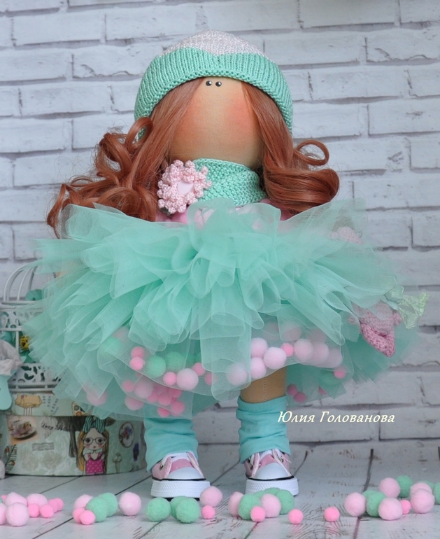 помпоны, сочетание мятного и розового.. ну прям моя слабость )))))