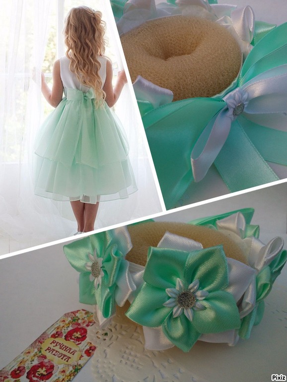 Украшение под выпускное платье для девочки в мятном цвете. Под срезом еще одно фото.