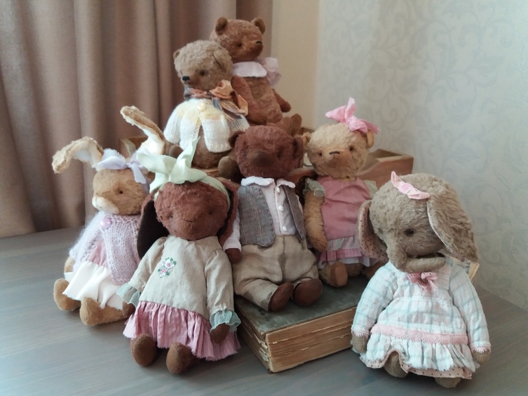 Тедди: мишки и их друзья.Все тедди сшиты полностью вручную с большой любовью и теплом.У каждого из них внутри опилки и металлический гранулят.Вся одежда съёмная.Получилась небольшая коллекция.Много фото под катом.