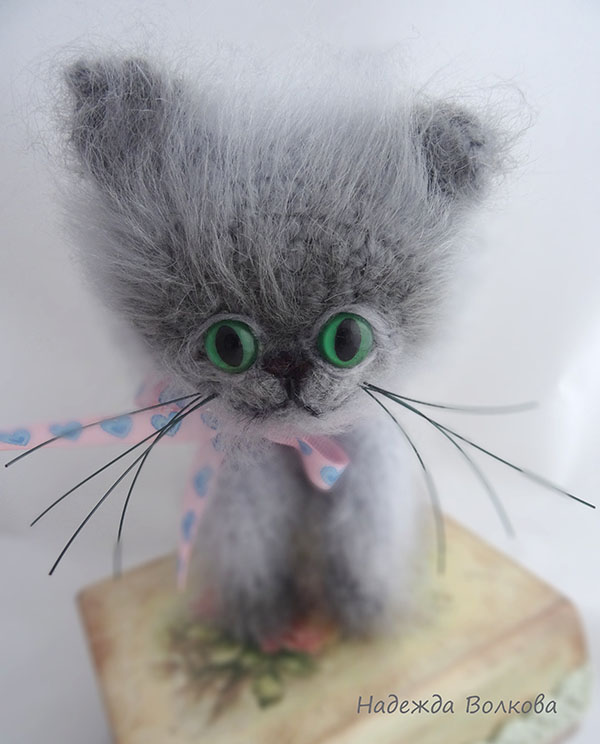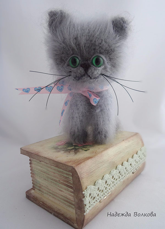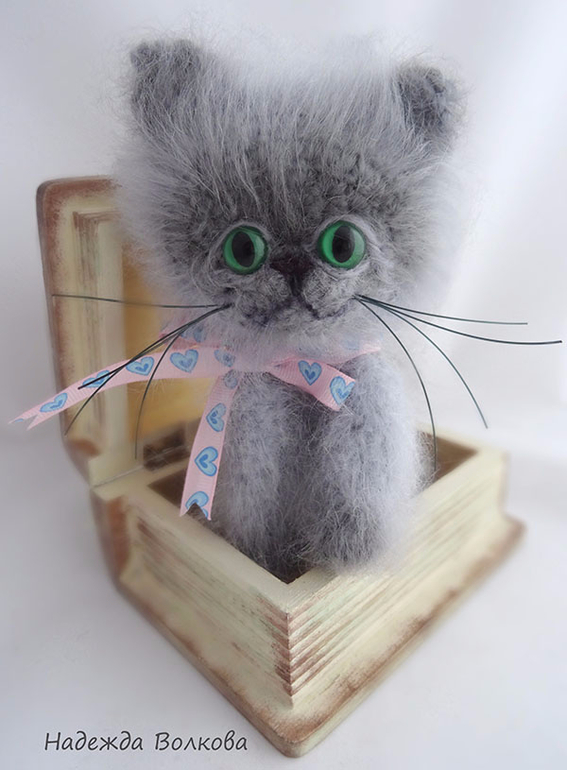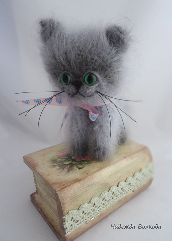 Амигуруми (вязаные игрушки)Котик Грустик, ростиком 14 см, поза статична. Связан из Мохер Классик от Ализе, ростиком около 14 см. В пузико вшит поющий механизм, при нажатии на животик поет песенку про кошачьи сны)