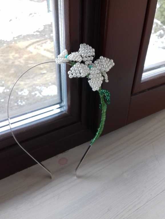 Бисер. Бисероплетение. Украшения из бисера.Мои дочки, им 8 лет, сделали подарок своей подружке на ДР. Букетик белых незабуток из бисера.