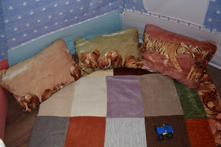 И теперь Марк там с удовольствием играет, устраивает там гараж, ходит туда обижаться на нас, смотрит там книжки и еще много чего. Даже просится там лечь спать