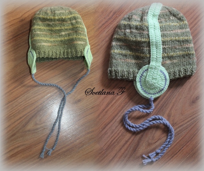 Сама шапка связана спицами, но самое главное тут наушники, они крючком))))