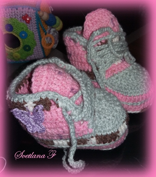 Мы пока не умеем ходить, но без ботиночек уже некрасиво выходить на улицу :)