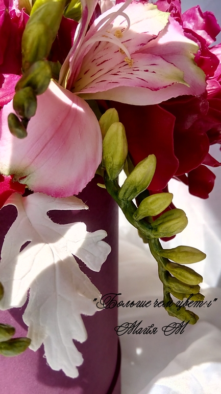 И так)))) представляю вам новую композицию! Все цветы выполнены в натуральную величину с проработкай всех мельчайших деталей. Материал-холодный фарфор, полностью ручная работа.
