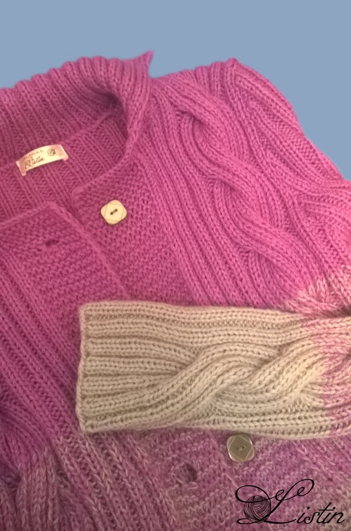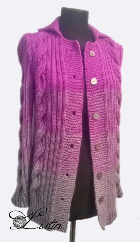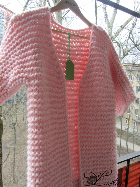 1. Кардиган из толстой пряжи 40м/100гр. Длина по спинке 95 см. Вес 1300 гр.