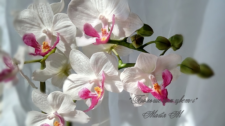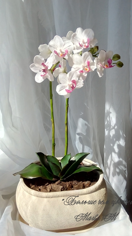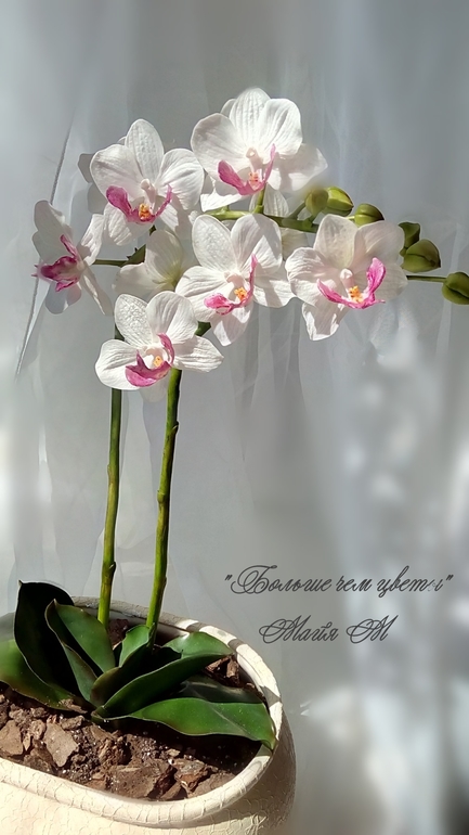 Лепка из пластики (полимерная глина) (ТОЛЬКО ГОТОВЫЕ РАБОТЫ)Еще одна композиция для выставки. Орхидея фаленопсис. Выполнена из холодного фарфора, полностью ручная работа. Цветок выполнен в натуральную величину с проработкой мельчайших деталей. Две веточки, на каждой по 6 цветков.