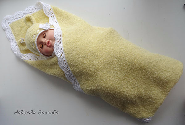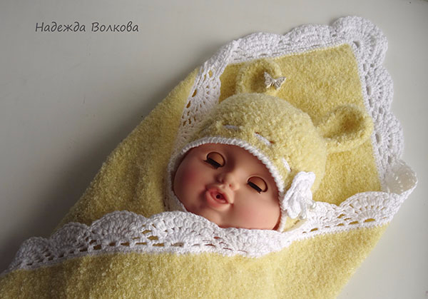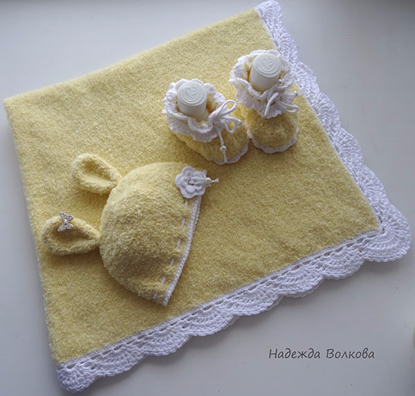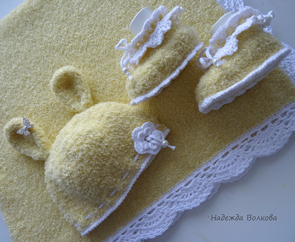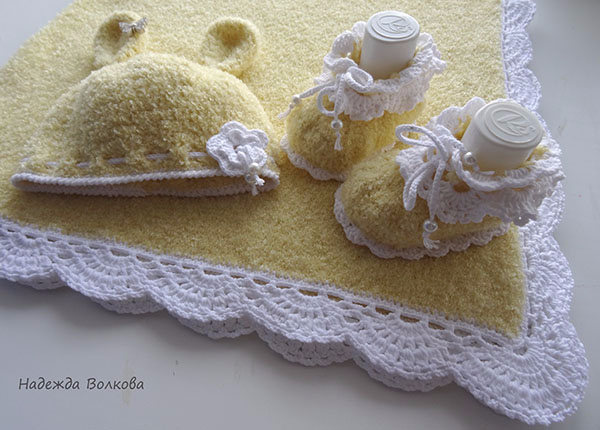 Вязание крючком (РАБОТЫ И СХЕМЫ)Роды уже не за горами, связала комплект на выписку для пузожительницы) пряжа Букле бобинная полухлопок, расход 260 г. Плед - машинная вязка в одно сложение, обвязка Котон софт от Вита, крючок 1,75. Шапочка и пинетки связаны крючком 1,75 в 2 сложения, обвязка Джинс от Ярнарт.