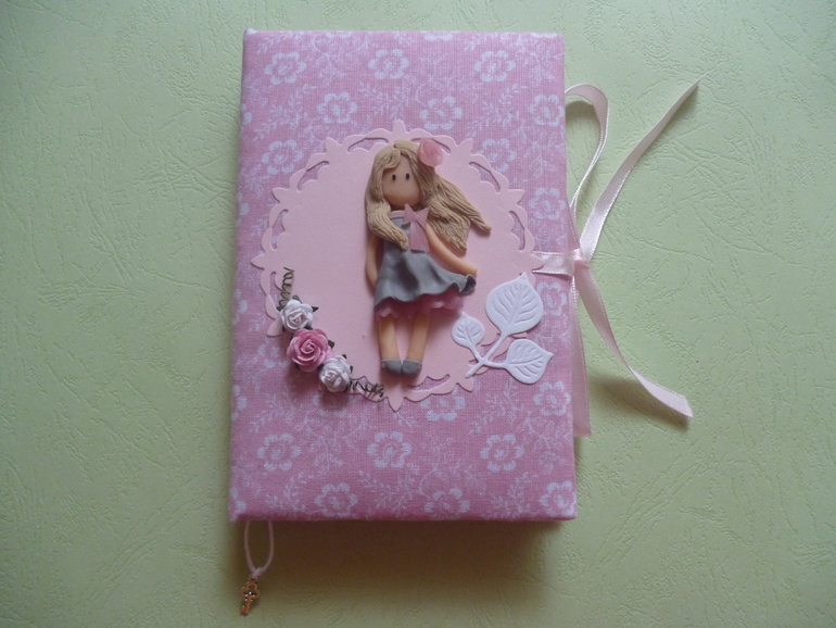 Ну и еще девочку делала для декора обложки блокнота. Блокнот тоже ручной работы