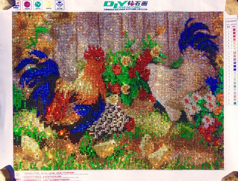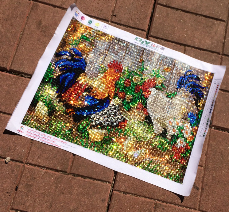 Спасибо, это совсем не сложно! Дочка справится, мне сын 6 лет с удовольствием помогал. Если дочка усидчивая, так вообще будет собирать с лёгкостью, главное чтоб сюжет нравился, пусть сама выберет. В этом ничего сложного, просто по номерам прикладывать стразы к липкой поверхности. Крестиком вышивать или бисером гораздо сложнее. Покупайте дочке, не раздумывая. Мы с сыном вместе собирали: он с одной стороны, я с другой.