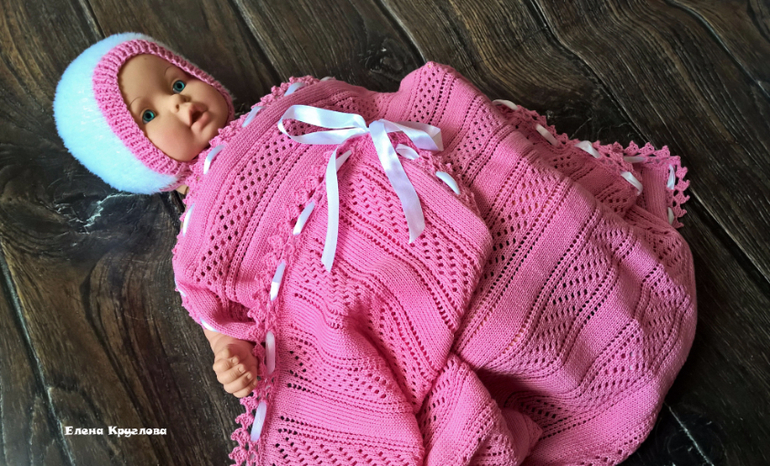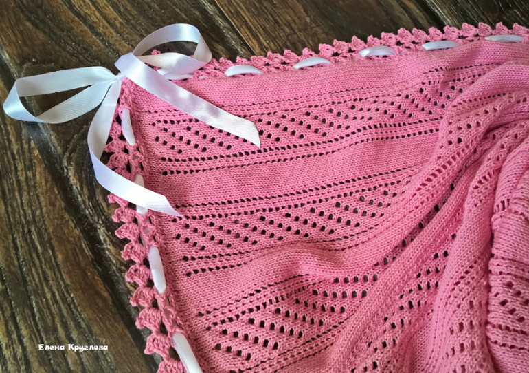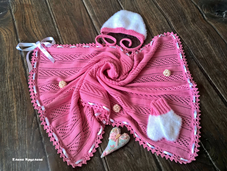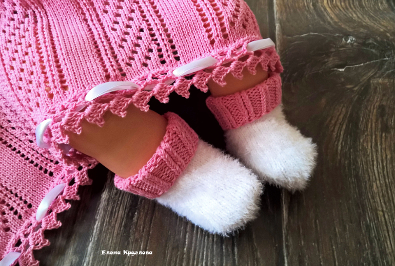 Машинная вязка (РАБОТЫ И СХЕМЫ)Вот такой комплект связался у меня для девочки 3-6 месяцев. Плед связан на машине,обвязка крючком. Носочки и чепчик связаны на спицах. Розовая пряжа 100% хлопок, белая пряжа хлопок-травка от Камтекс,просто невероятно мягкая и нежная на ощупь. Под кат 5 фото