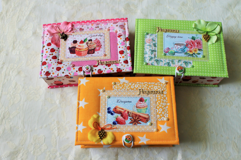 И сотворились 3 коробочки, в этот раз делала их без карточек, в них удобно хранить вырезки и записки с рецептами