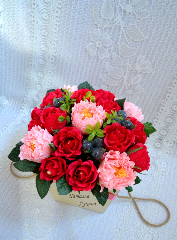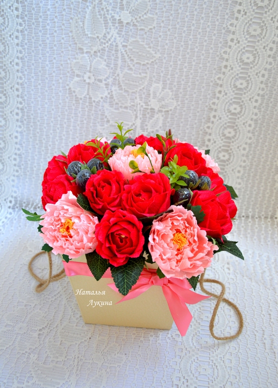 Букеты из конфет. Свитдизайн.Доброе утро,Всем! А у меня сегодня букет в коробке "Пионовая страсть" с конфетами и жевательным мармеладом..