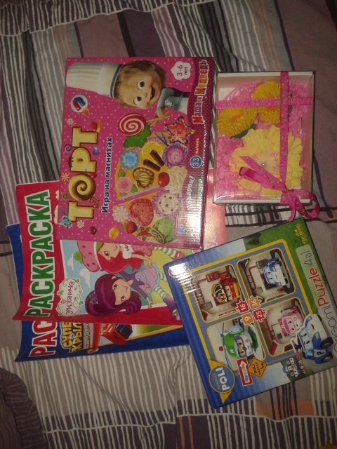 это крошечкам (весь вечер играем, поочередно собирая пазл и готовя пироженки