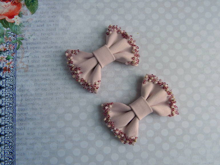 Цветы из ткани и форма. Канзаши. Украшения для волос.Доброго времени суток, девочки! За выходные сотворилась пара бантиков, не придумала ещё заколки это будут или резиночки.