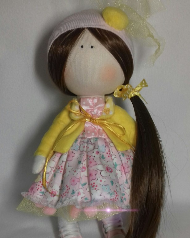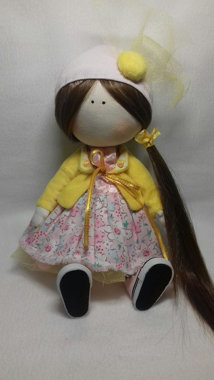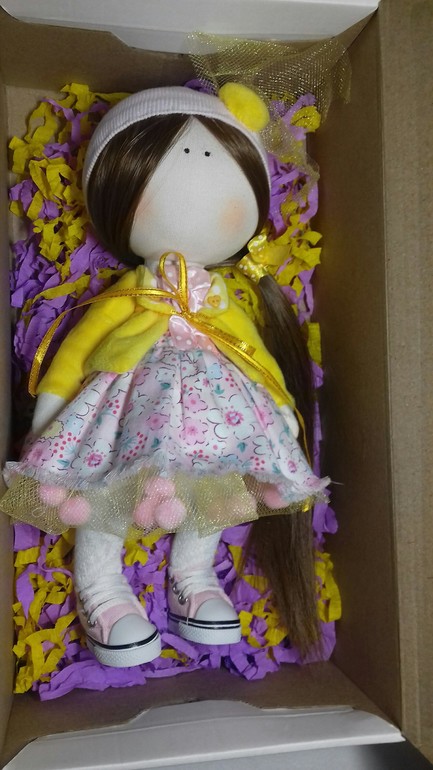 Сшилась у меня вот такая текстильная кукла, она игровая, заказала мама маленькой девочки. Изготовленна из мега плотного трикотажа, хлопка и фатина. Одежда с минималным колличеством пуговиц, различной фактурой и интересными тактильными элементами. Рост 25 см. Вес 165 гр. Дата рождения 31.05.17 г. Я ее упаковала, теперь ждет когда ее забирут.
