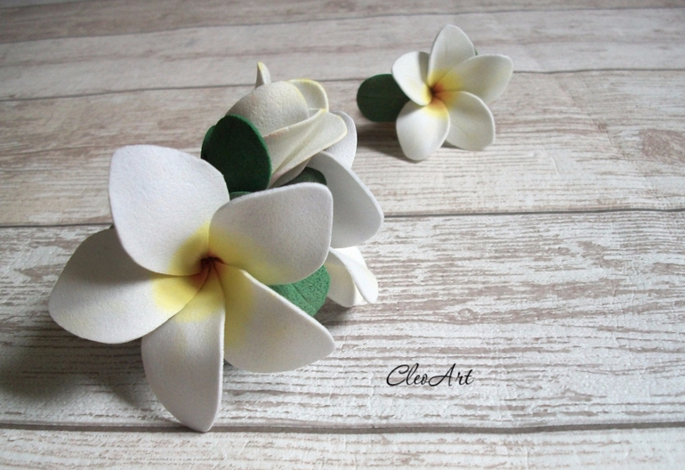 Цветы из ткани и форма. Канзаши. Украшения для волос.Нежные и экзотичные цветы плюмерии навевают мысли о жарком лете, отдыхе и безмятежности)