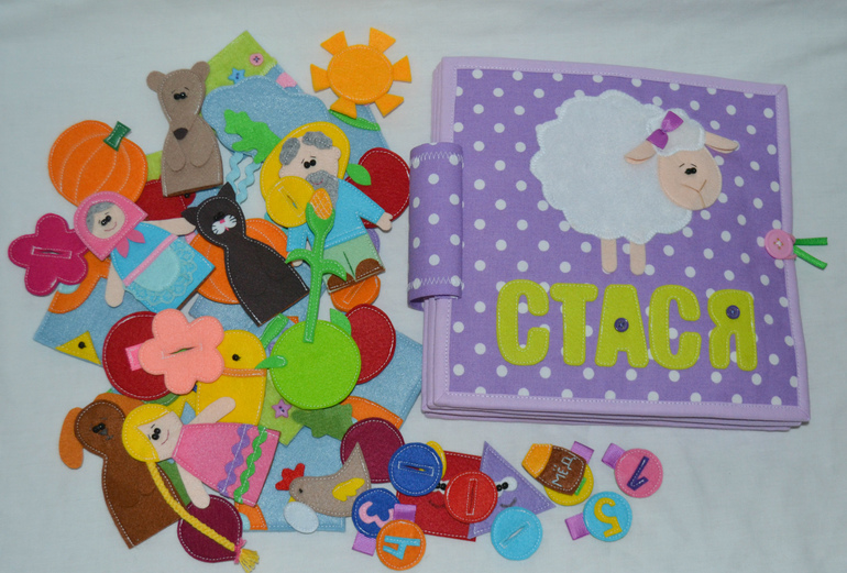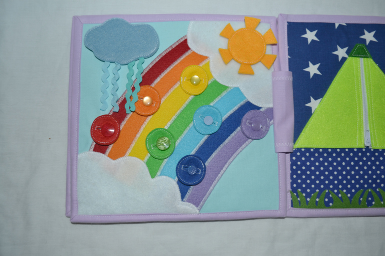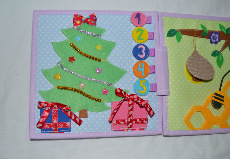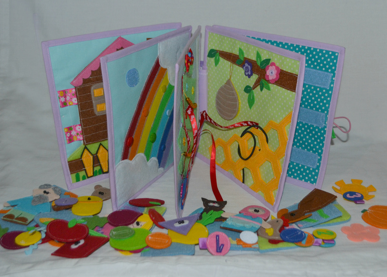 Развивающие игрушкиОчередная книжечка отправилась к своей хозяйке. Размер как и всегда 23*23 см. Съемных деталек в ней-48 шт. Под cut много! фото! Приятного просмотра и хорошего настроения!!!