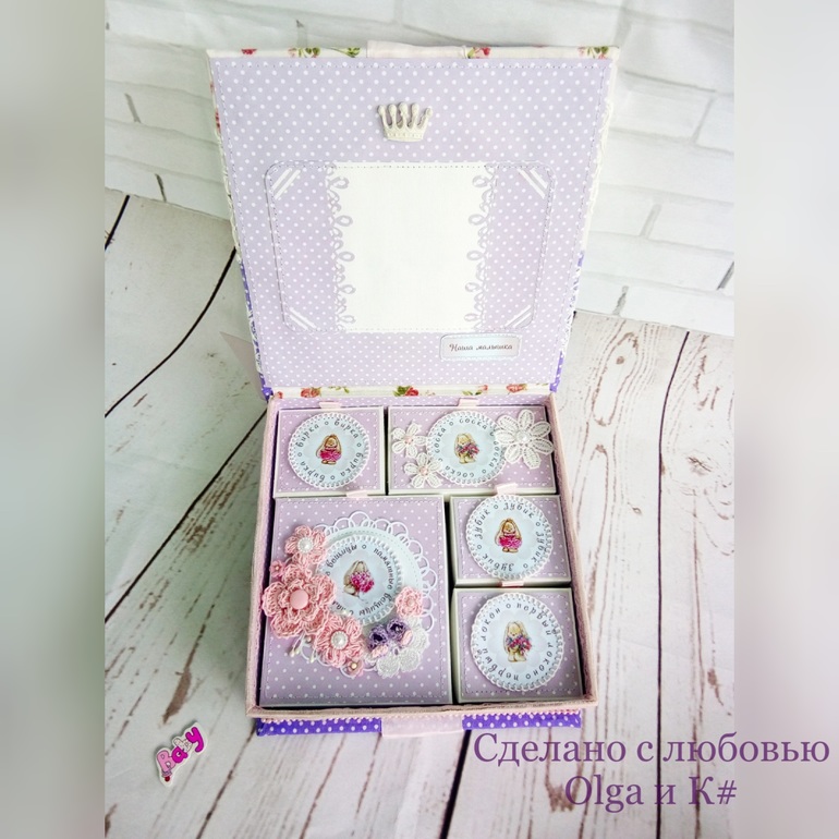 Всем привет! А я к Вам сегодня с шкатулочкой Мамины сокровища размером 21*21 см, внутри пять коробочек для сокровищ малышки, есть место для фото. Всем добра и позитива)))