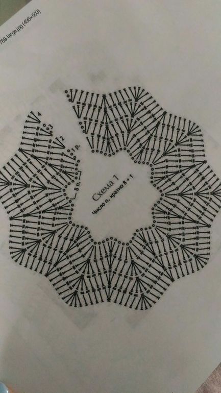В схему добавила ряды без прибавок, через один, так расширяется кокетка плавнее. 4й, 6й, 8й и тд в веере по 3 петли, вместо 5и