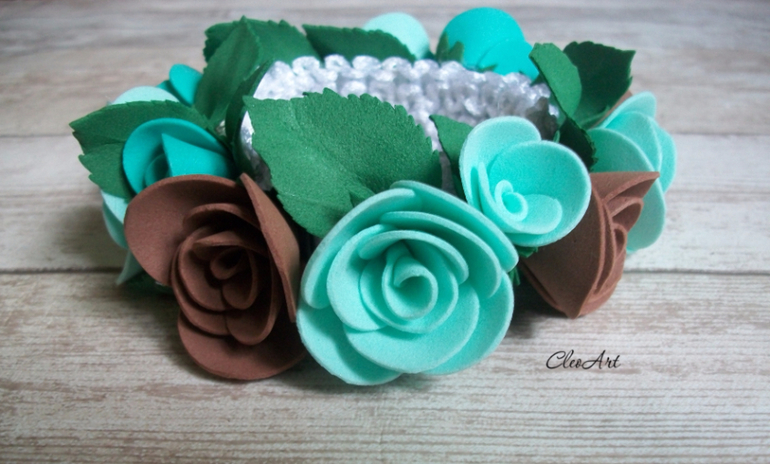 Цветы из ткани и форма. Канзаши. Украшения для волос.Резинка на пучок из фоамирана "Мятный шоколад" придаст изящества и уникальности самой простой прическе. Гармоничное сочетание свежего мятного и теплого шоколадного оттенков подходит абсолютно любому цвету волос, и подчеркивает тонкий вкус своей обладательницы.