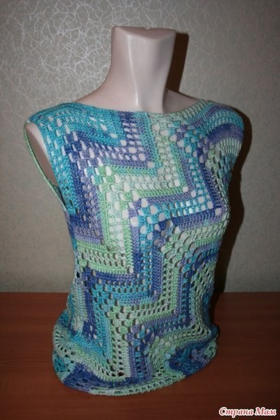 Вопрос/ответ, поиск схем, выкроек, советов, магазинов и т.дДевочки,дорогие,помогите!!!!Может кто-нибудь вязал такой топ и подскажет как он вяжется!!!Или схемка у кого-нибудь почётче есть!!!!