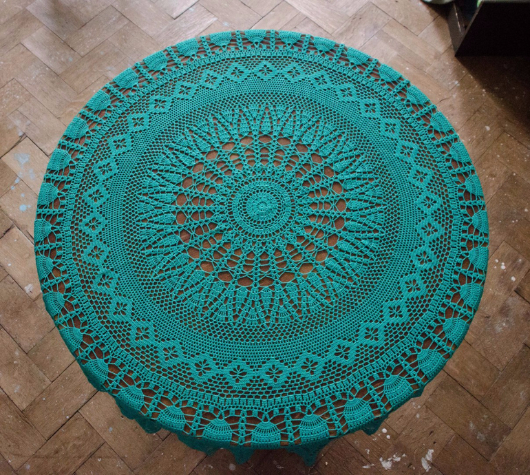 Очень здорово!!! И пусть у нас нет круглого стола, но так захотелось связать)) можно попросить схему у вас? И какими нитками/крючком вязали?