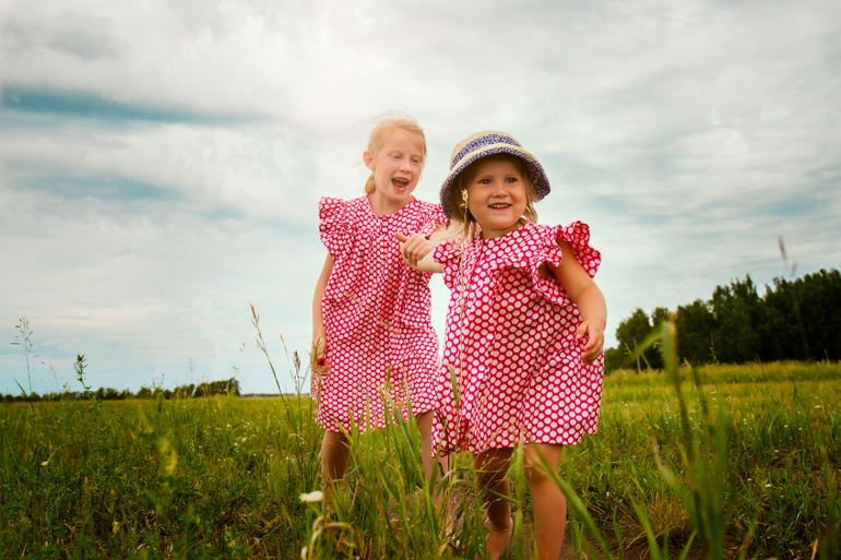 Красивые и счастливые детки в красивых, одинаковых платьях- все к месту.