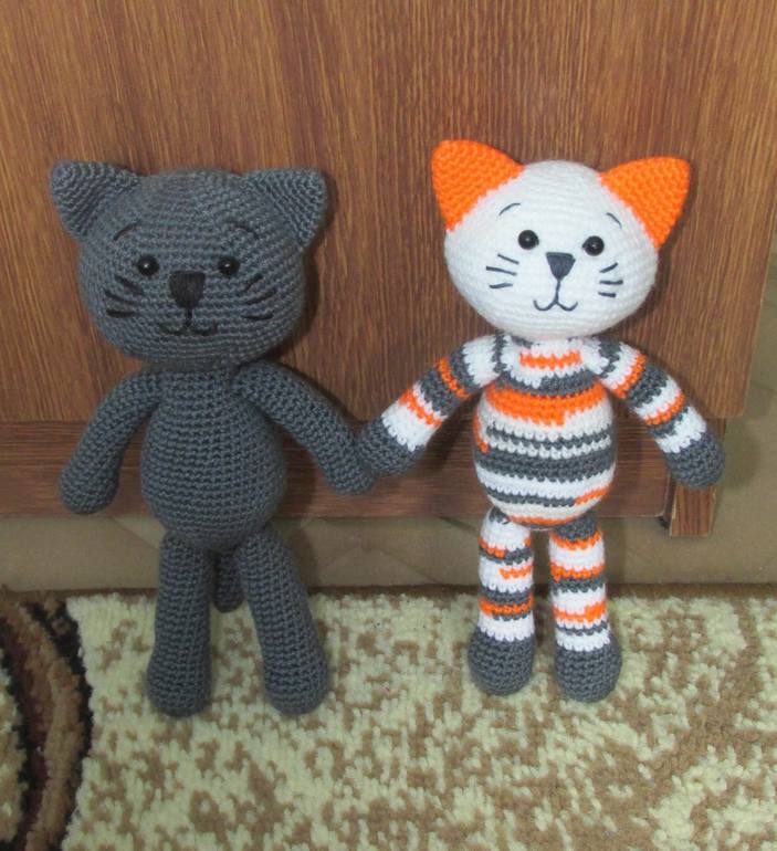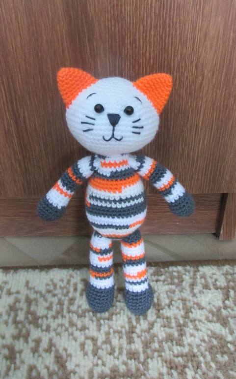 Амигуруми (вязаные игрушки)Связался очередной котик из остатков ниток разных цветов. Веселый и озорной: