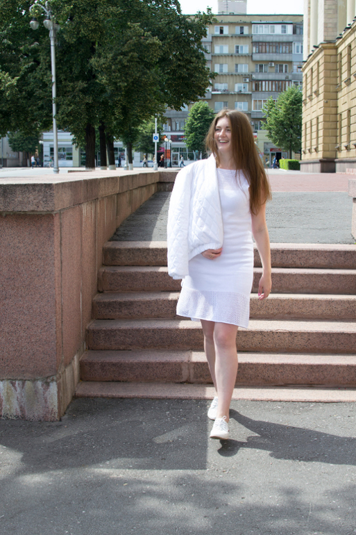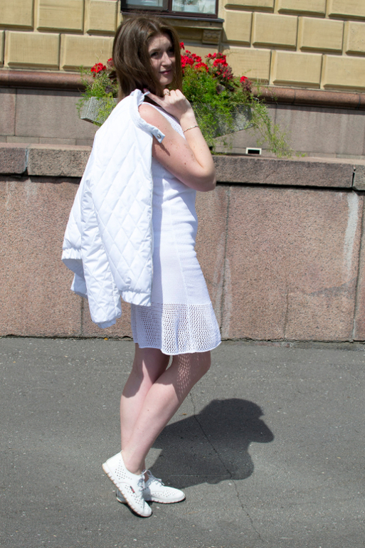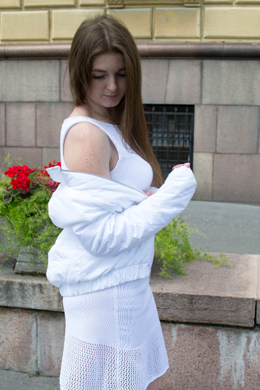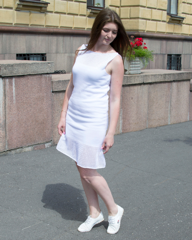 Белоснежное вязаное платье