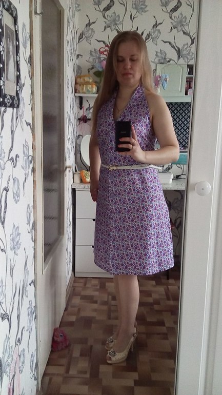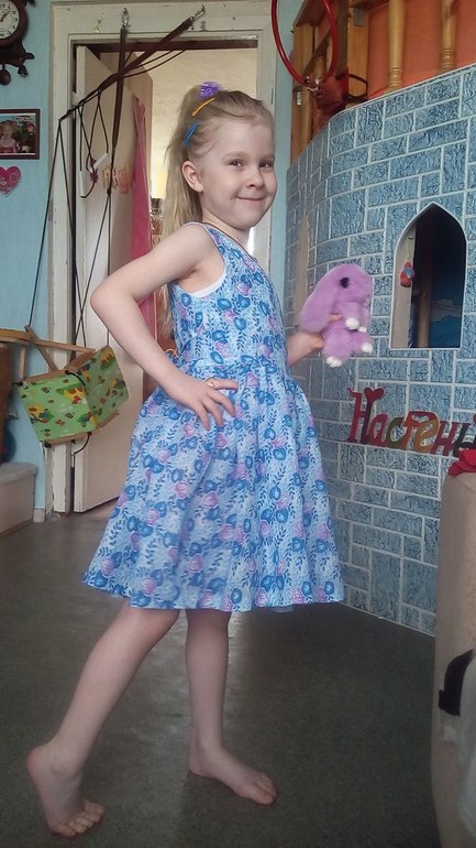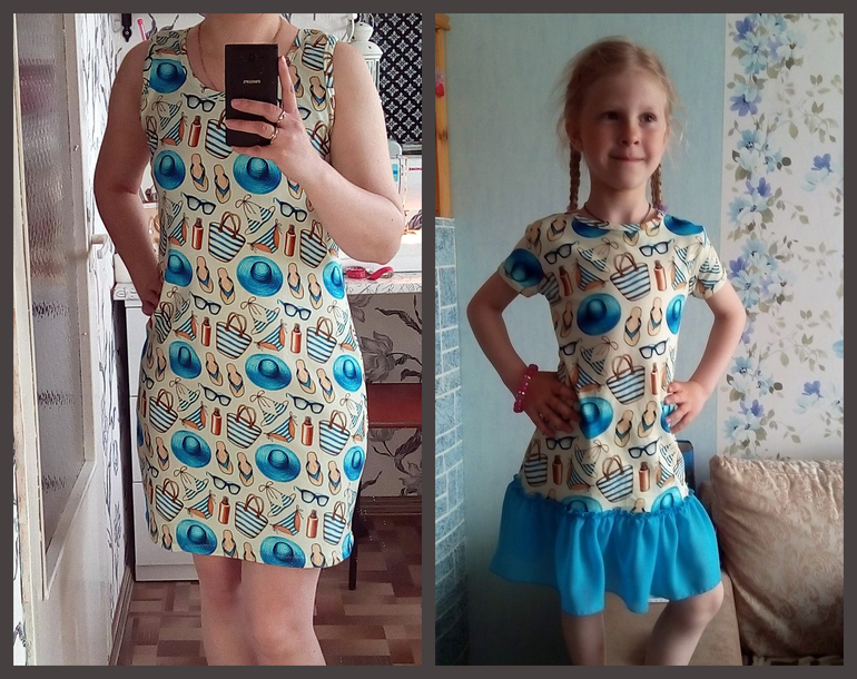 пошилось платье из хлопка с открытой спиной по древней выкройки из маминых запасов))) и из остатков платье на дочурку.