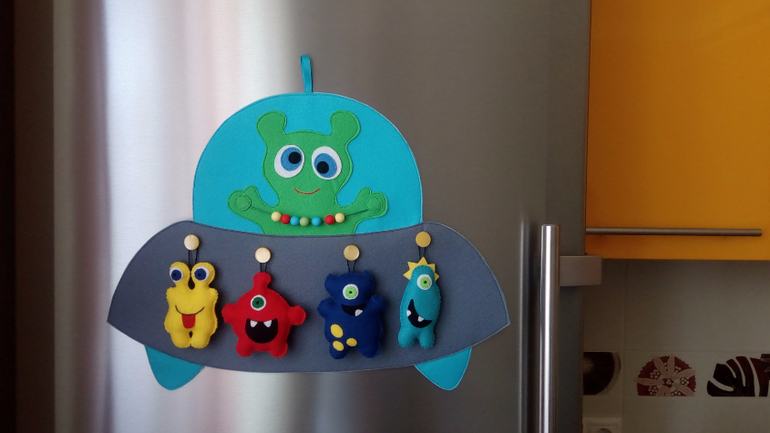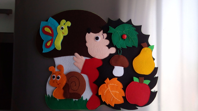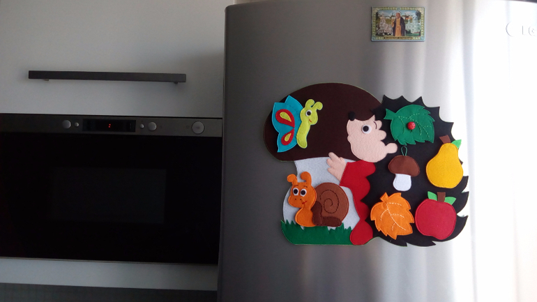 ФетрБольшинство времени мы проводим на кухне, ну и малыши естественно вместе с нами. А если занять его развивающей игрушкой - и малыш под вашим присмотром, и вы занимаетесь своими делами! В процессе игры у ребенка развивается координация движений, мелкая моторика, он знакомится с пуговицами и навесными петлями. Игрушку можно примагнитить на любой высоте, комфортной для малыша. Перед ней можно стоять и сидеть, ее можно положить. Можно поднять высоко, чтобы малыш не достал без вашего присмотра, если он еще совсем маленький. Магниты приклеены между двумя слоями фетра внутри игрушки, поэтому она безопасна. Петельки на игрушках изготовлены из вощёного шнура, они хорошо держат форму. Ребенку будет легко одевать их на пуговки. Изготовлены полностью из корейского фетра. (Далее много фото!)